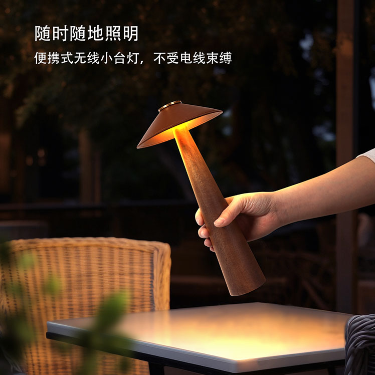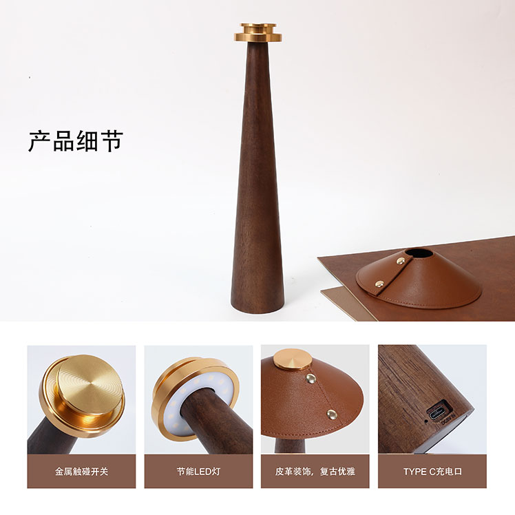 | 创意说明: | 产品特点: 中古造型 原木材质 内置2000毫安聚合物锂电池 循环充电 触摸开关 三色温调节 长按无级调光 |