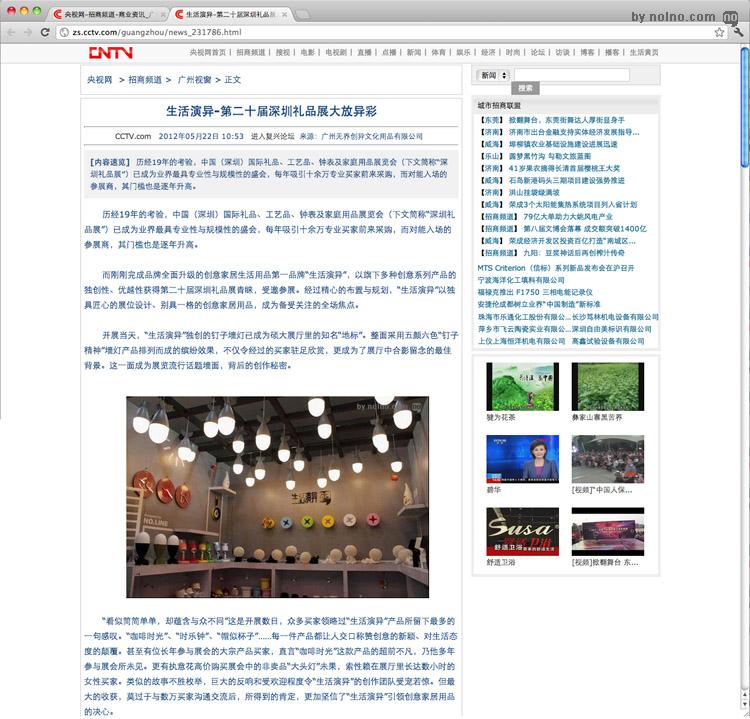 CCTV.com央视网对"生活演异"在第二十届深圳礼品展的报道