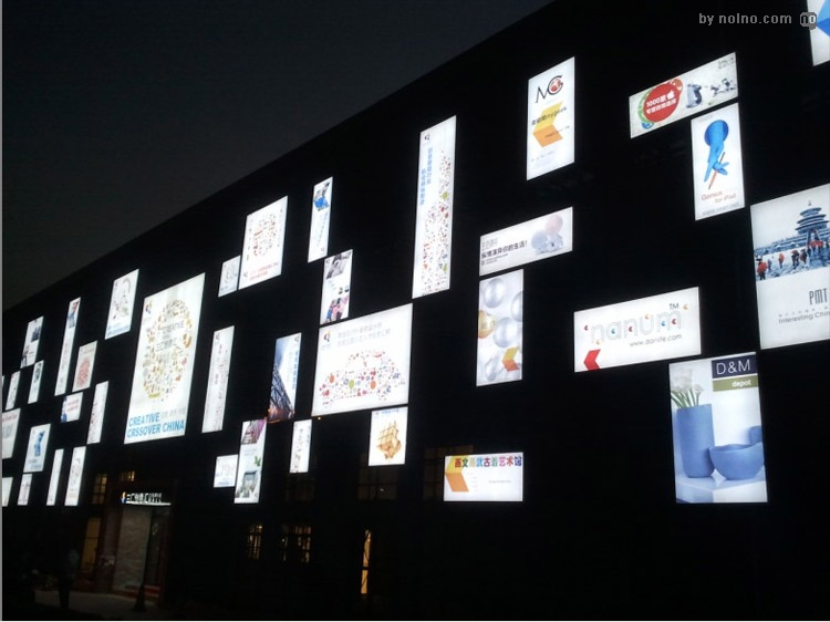 大头灯在北京798创意园内的世界创意博览中心外墙上。