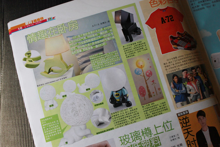 广州本地潮流周刊《可乐生活》内上的刊登了生活演异的木马台灯、大头灯、花颜 春晓和汪旺灯!广州的童鞋快去买一本支持一下吧,是3月27的最新一期哦!