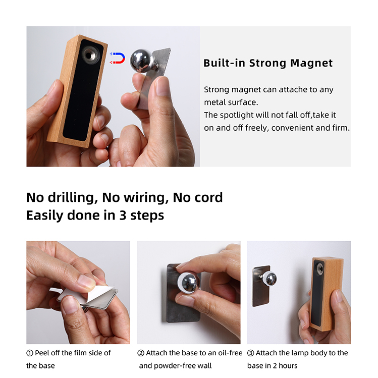 - Easy Installation--Our spotlight can be easily installed,you can stick it on any smooth surface indoors. Please keep the surface clean and dry before use the double-sided.