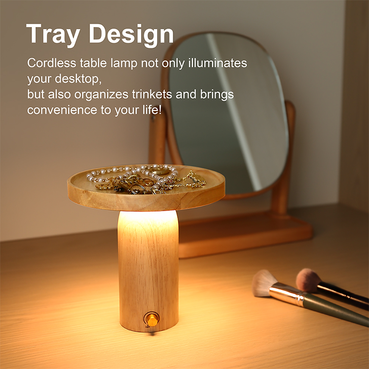 - Multi Functional Table Lamp Base:Rechargeable Cordless table lamp with decorative tray design, retro metal appearance, cordless table lamp can be placed on the dressing table to store your earrings, rings, hair clips and other small items, suitable for daily life utensils and decorations, bringing you convenience.