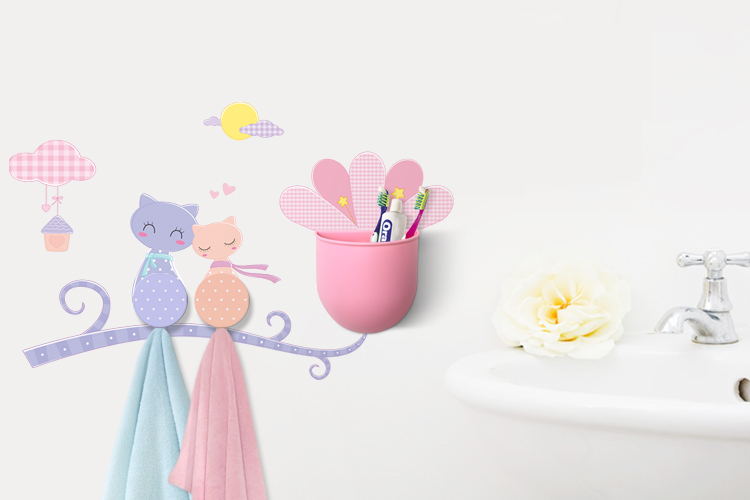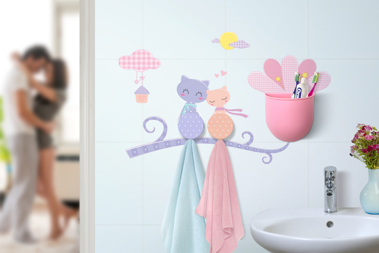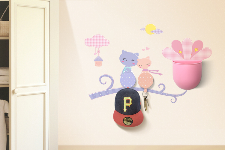 Eco-friendly Plastic hook with DIY wall decals, Sundries Organizer set, Kitty couple