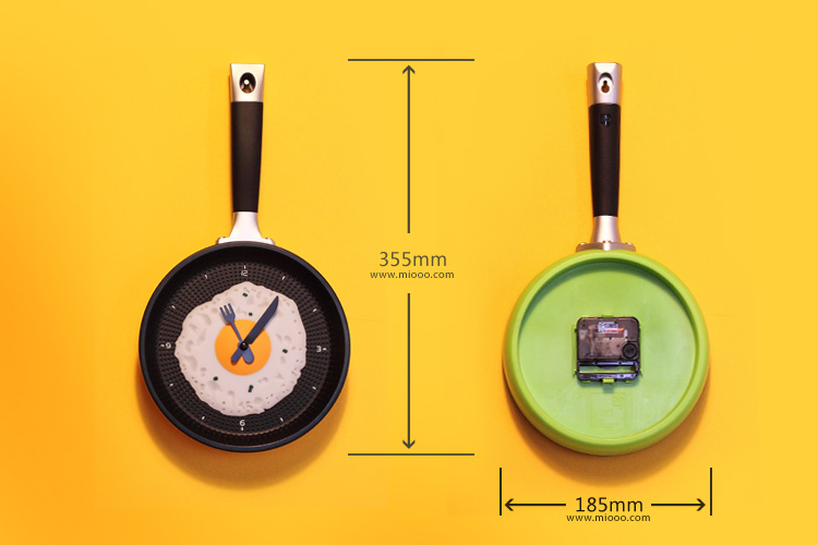 以平底锅为造型的钟挂件。产品分平底外形挂件,食物换件与时针共三部分部件。新颖独特的创意和生活艺术造型,产品除去能满足你日程安排所需,也彰显了你的个性十足的生活主张。