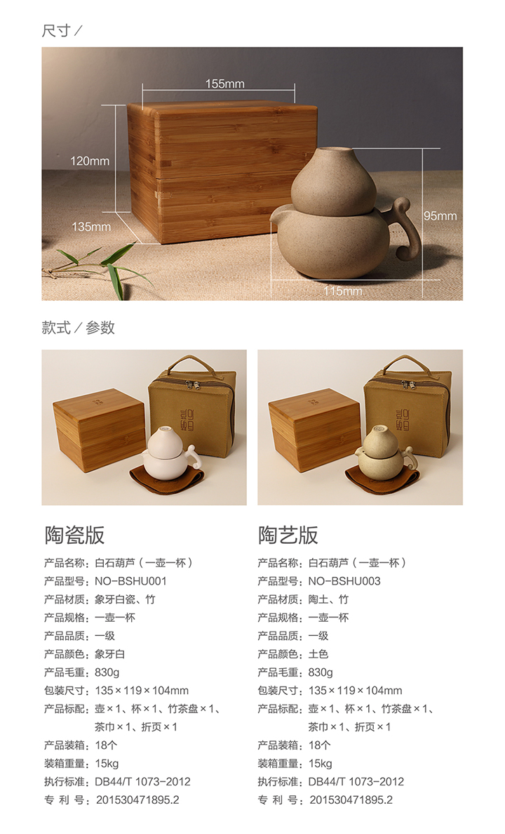 | 产品名称: | 白石葫芦(一壶一杯茶具)-陶艺版 |