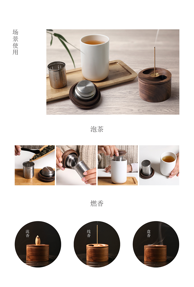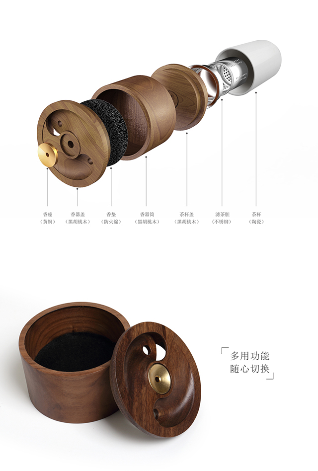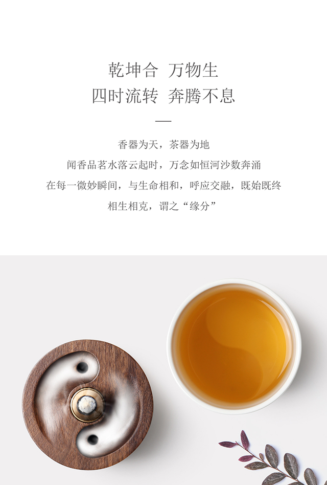 | 创意说明: | 香器与茶器的结合,内有乾坤。香器为天,茶器为地,闻香品茗水落云起时,万念如恒河沙数奔涌。 |