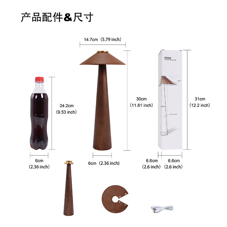 | 创意说明: | 产品特点: 中古造型 原木材质 内置2000毫安聚合物锂电池 循环充电 触摸开关 三色温调节 长按无级调光 |