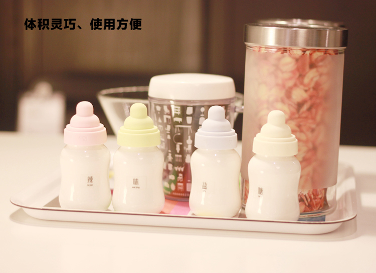 好生活,需要对心情的合理调节;一道好菜,需要对味道的平衡控制。一奶瓶的调味,让你可以调出美味,满足味觉需要。又可以让你忆起母爱的美好、温和,产生温馨感觉。并且造型可爱有趣,让你身心体会满足的同时;又把趣味带进厨房,为你的生活添彩。