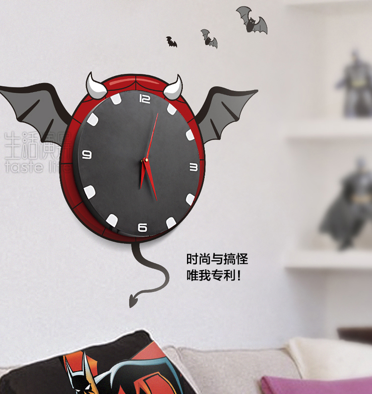 | 创意说明: | 花颜(墙贴挂钟)夜蝙蝠——这是一款集时间显示与家居装饰功能于一体的“3D可移除式墙贴挂钟”环保产品,采用全新透明环保贴纸与优质环保塑料为制作材料,通过优良的工艺打造而成。创意钟饰与卡通蝙蝠形象的墙贴结合,而蝙蝠头上白色的兽角搭配红色的圆边,更显此蝙蝠的王者之势,也传达时间独有的魔力。立体墙贴遇上艺术挂钟,随爱DIY,尽显3D、环保便利创意家居品味。 |