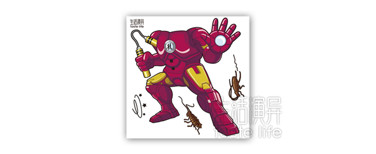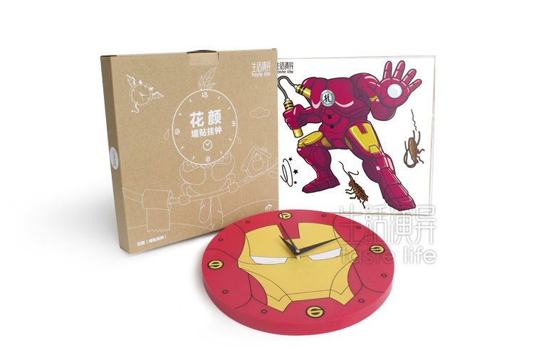 | 创意说明: | 花颜(墙贴挂钟)小龙侠——这是一款集时间显示与家居装饰功能于一体的“3D可移除式墙贴挂钟”环保产品,采用全新透明环保贴纸与优质环保塑料为制作材料,通过优良的工艺打造而成。挂钟将李小龙的经典动作造型与钢铁侠形象墙贴巧妙结合,当钢铁侠搭配上双节棍,“喀喳”一声,让世界不再存在打不死的蟑螂。立体墙贴遇上艺术挂钟,随爱DIY,尽显3D、环保便利创意家居品味。 |