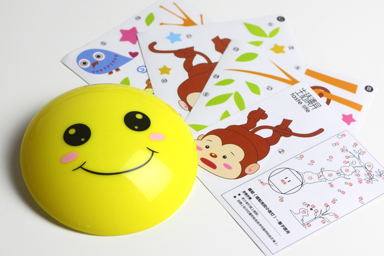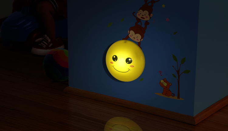 产品创意的把墙贴和小夜灯结合在一起组合成猴子捞月的图样,赋予了小夜灯更多的功效、更多的内涵。光控的人性化设计,解除了您每天想着开、关的烦扰;环保节能LED光源、进口环保原料的搭配环保又节能,功耗每年还不足一度电;温和的灯光,晚上既可以有一定的光亮又不会刺眼而影响休息;备用开关,更是让您开、关随心。搭配墙贴贴在墙上更是增加了空间里的活跃元素,更受孩子的喜爱。