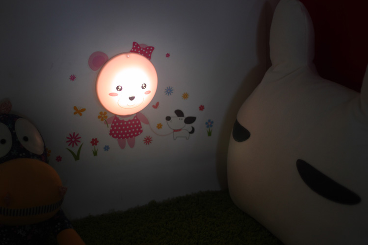 创意的把墙贴和小夜灯结合在一起组合成小熊的图样,赋予了小夜灯更多的功效、更多的内涵。光控的人性化设计,解除了您每天想着开、关的烦扰;环保节能LED光源、进口环保原料的搭配环保又节能,功耗每年还不足一度;温和的灯光,晚上既可以有一定的光亮又不会刺眼而影响休息;备用开关,更是让您开、关随心。搭配墙贴贴在墙上,更是增加了空间里的活跃元素,更受孩子的喜爱。温馨可爱的小熊,是一种暖暖的陪伴。