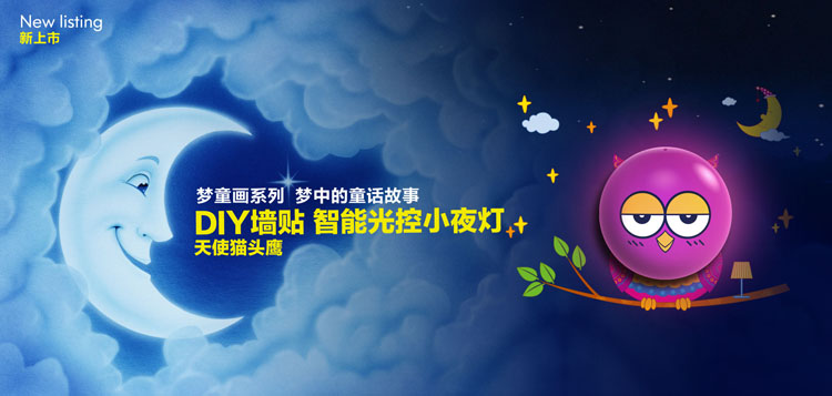 【产品名称】梦童画(DIY墙贴光控小夜灯)——天使猫头鹰
