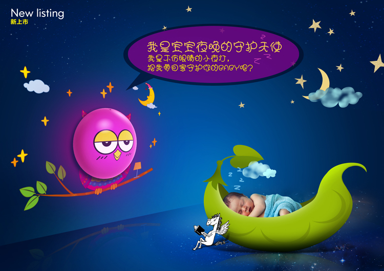 | 创意说明: | 创意的把墙贴和小夜灯结合在一起组合猫头鹰图样,赋予了小夜灯更多的功效、更多的内涵。 |