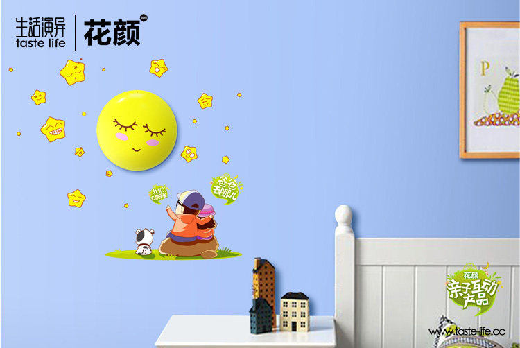 | 创意说明: | 创意的把墙贴和小夜灯结合在一起组合爸爸与小孩数星星的图样,赋予了小夜灯更多的功效、更多的内涵。光控的人性化设计,解除了您每天想着开、关的烦扰;环保节能LED光源、进口环保原料的搭配环保又节能,功耗每年还不足一度电;温和的灯光,晚上既可以有一定的光亮又不会刺眼而影响休息;备用开关,更是让您开、关随心。搭配墙贴贴在墙上更是增加了空间里的活跃元素,更受孩子的喜爱。 |