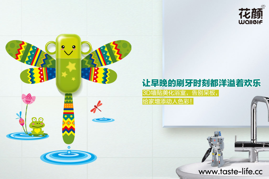 创意说明: 要孩子规规矩矩的刷牙,很多时候都是一件让妈妈头疼的事,爱玩是孩子的天性,何不让孩子在玩乐中,自觉刷牙、爱上刷牙呢? 花颜墙贴洗漱套装,将墙贴与洗漱套装完美的跨界结合,彻底告别传统、呆板的洗漱套装形象!可爱的动物造型,不仅给家增添亮丽风景,还能让孩子自觉刷牙,在玩乐中爱上刷牙哦!配上亲子互动墙贴,增进亲子关系的同时,还能培养孩子的动手能力呢!