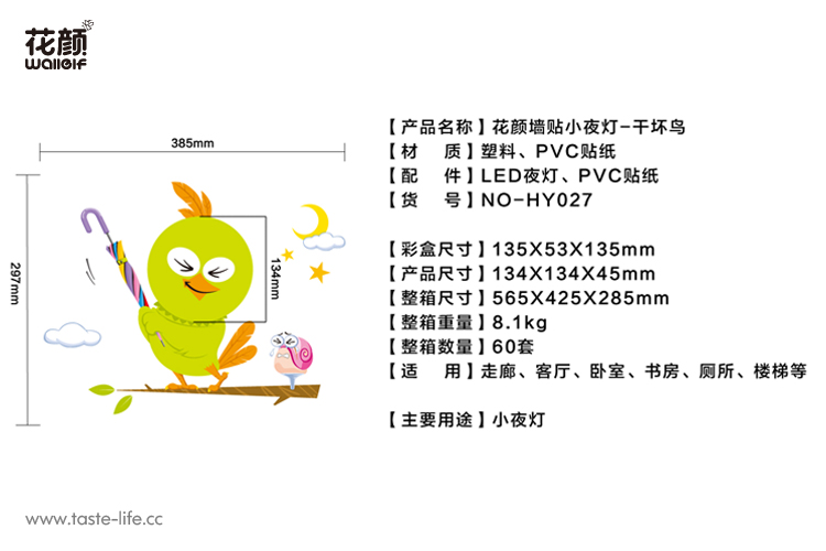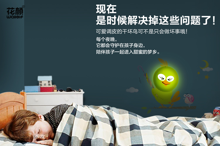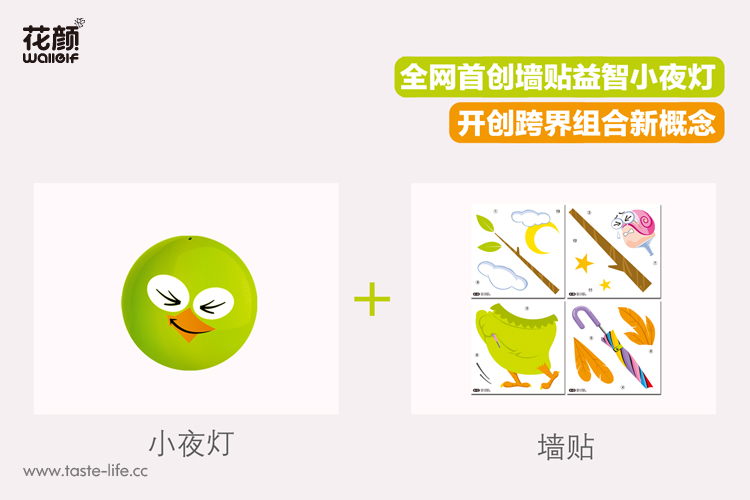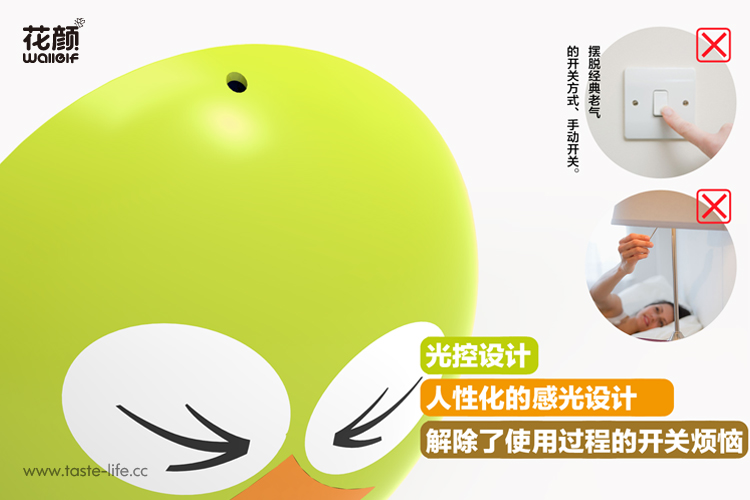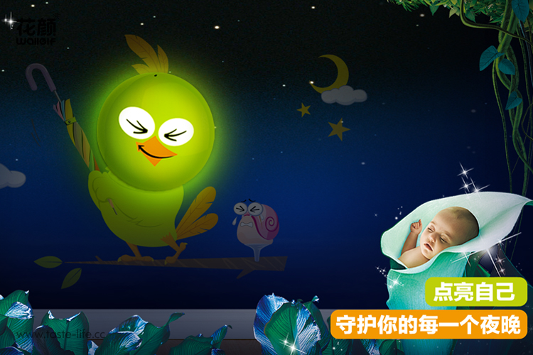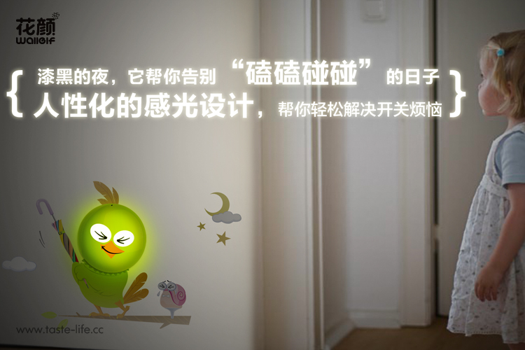 | 创意说明: | 创意的把墙贴和小夜灯结合在一起组合猫头鹰图样,赋予了小夜灯更多的功效、更多的内涵。 |