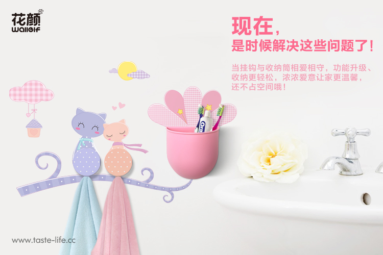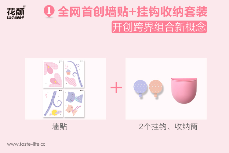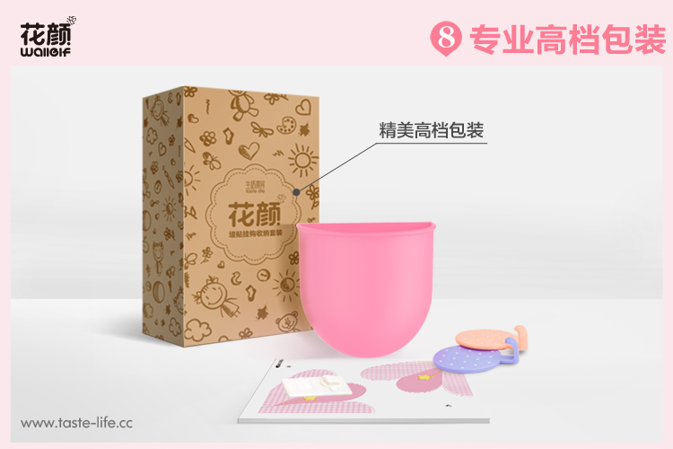 | 创意说明: | 花颜墙贴挂钩收纳套装,集墙贴、挂钩、收纳筒于一体, 功能更强大、收纳更轻松,还不占空间哦! 独创 益智拼图与收纳 完美跨界组合,可爱造型, 更能调动孩子收拾的兴趣,让孩子从小养成好习惯。 |