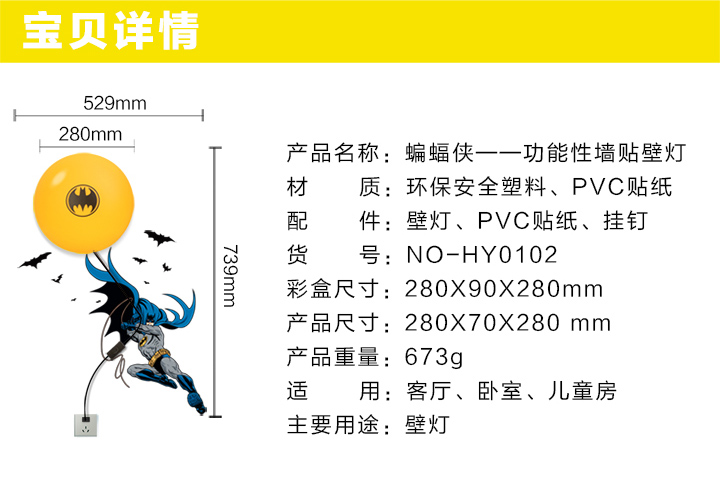 | 产品名称: | 蝙蝠侠-功能性墙贴壁灯 |